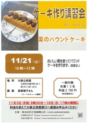 ◆ケーキ作り講習会〜栗のパウンドケーキ〜