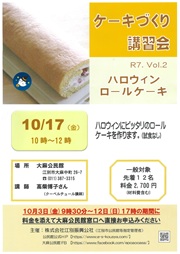 ◆ケーキ作り講習会〜ハロウィンロールケーキ〜
