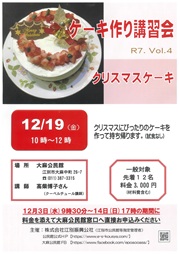 ◆ケーキ作り講習会〜クリスマスケーキ〜