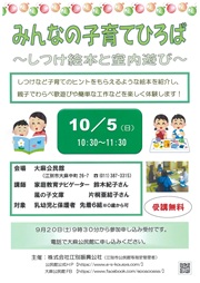 子育ての参考になるような絵本の紹介と室内でできる工作等の遊びの体験会です。 |