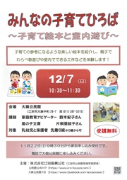 子育ての参考になるような絵本の紹介と遊びうたや室内でできる工作などの体験会です。 |