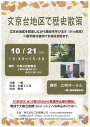 文京台地区を散策しながら歴史を学びます。(5km程度)雨天時は室内でお話を聞きます。