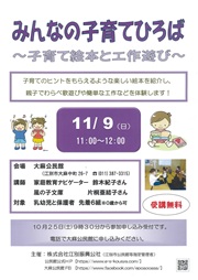 子育ての参考になるような絵本の紹介と室内でできる工作等の遊びの体験会です。 |